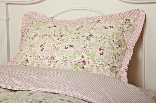 Beautiful Girls Duvet Cover Set. The standard sham features a pink gingham ruffle around the edge. The duvet cover is reversible duvet which allows you to change the look of your room every time you make your bed. One side is the floral design and it reverses to a pink gingham. The duvet cover has a hidden zipper closer on the bottom. Product Dimensions:Sham: 20x26 + 2" RuffleDuvet Cover: 64x84